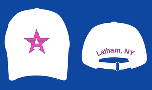 Allstars Puff Star with Latham, NY on back (White Hat with Pink Star or Royal Hat with White Star)