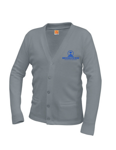 • BROOKLYN RISE V-NECK GRAY CARDIGAN SWEATER W/ LOGO